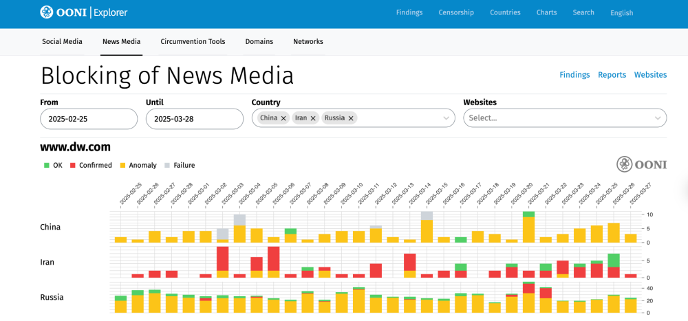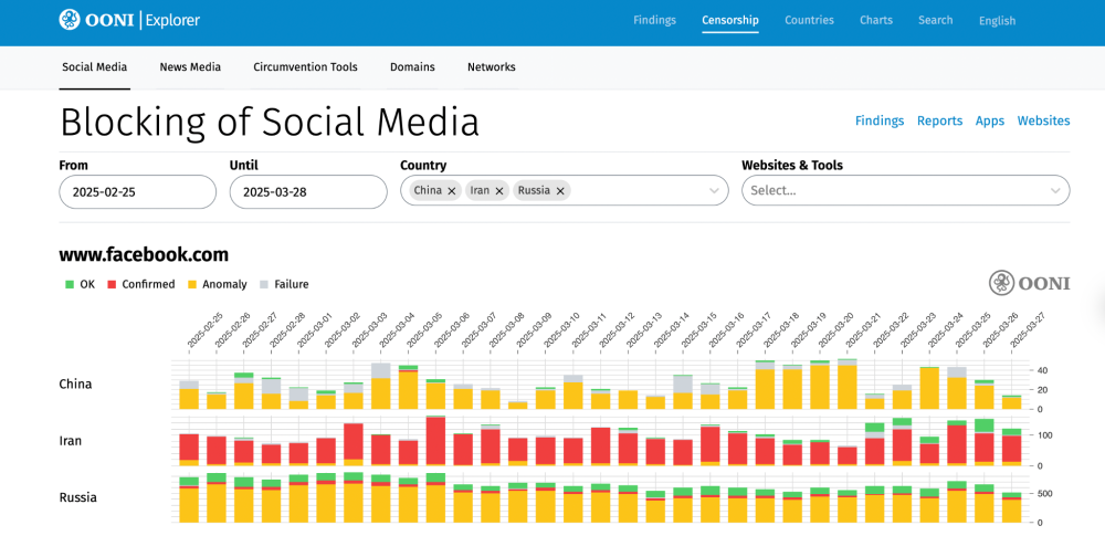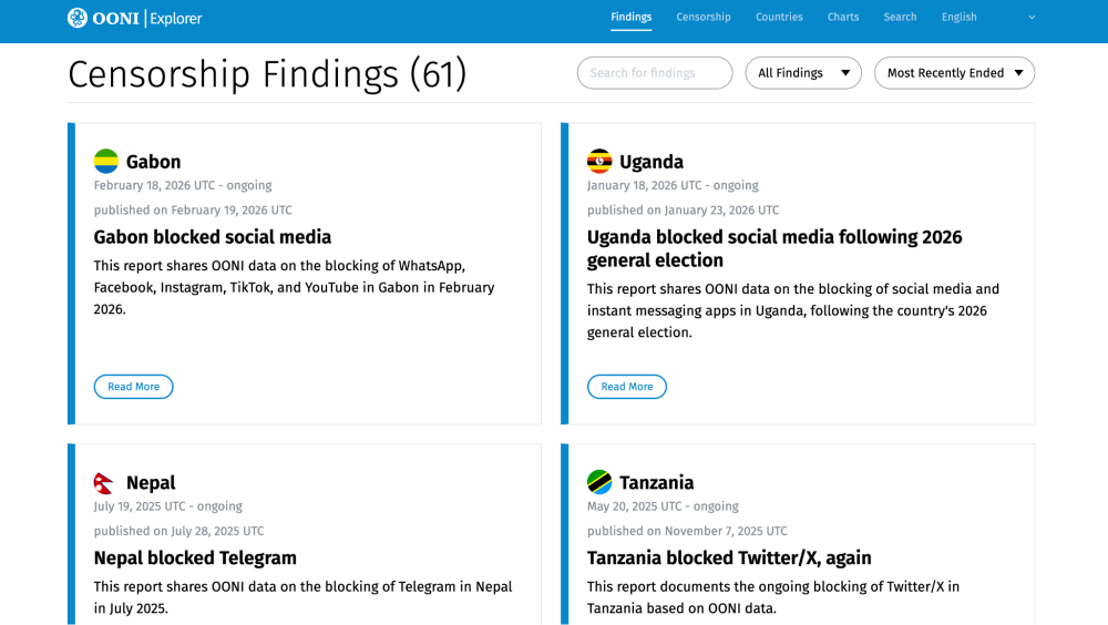 - OONI Explorer Censorship Findings platform